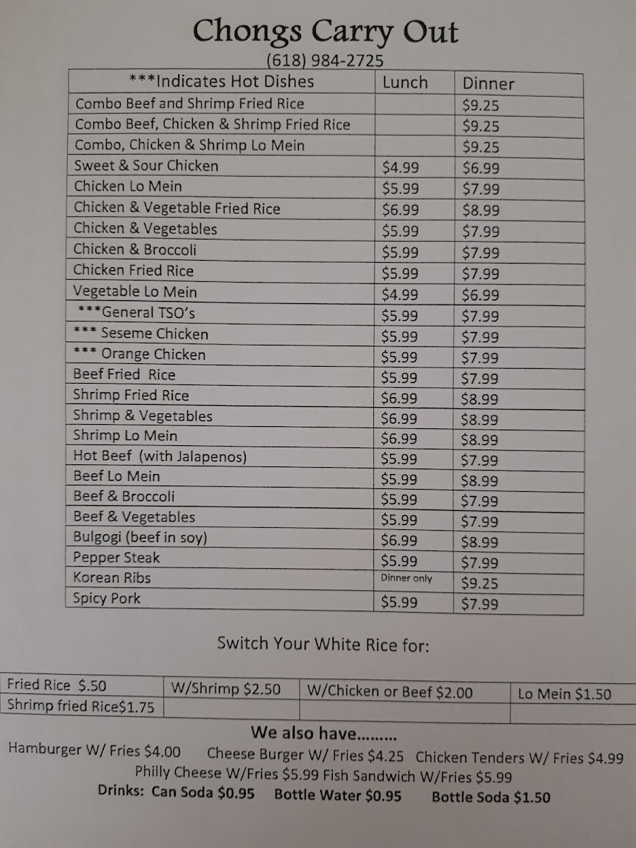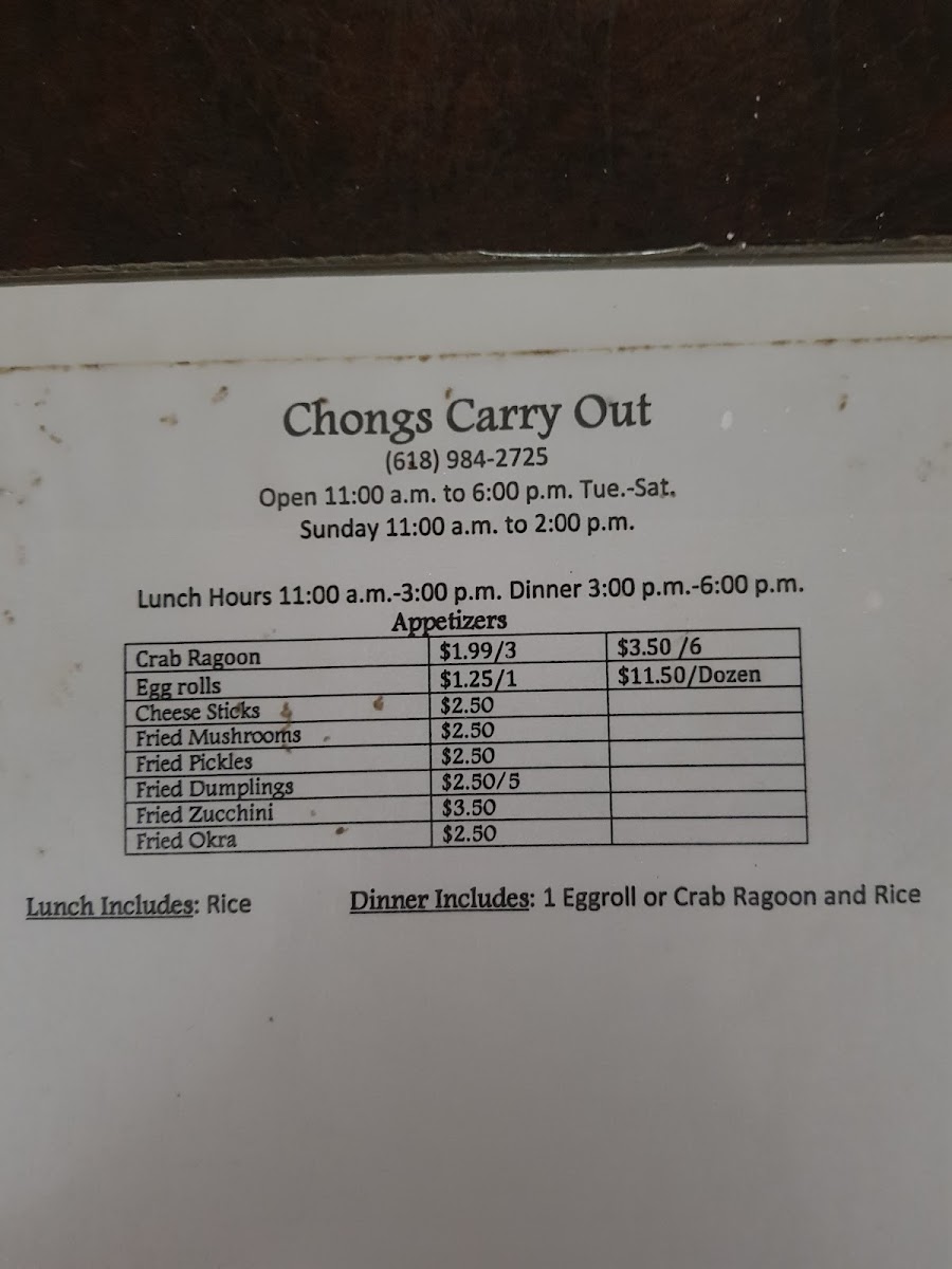 Chong's Carry Out Menu
